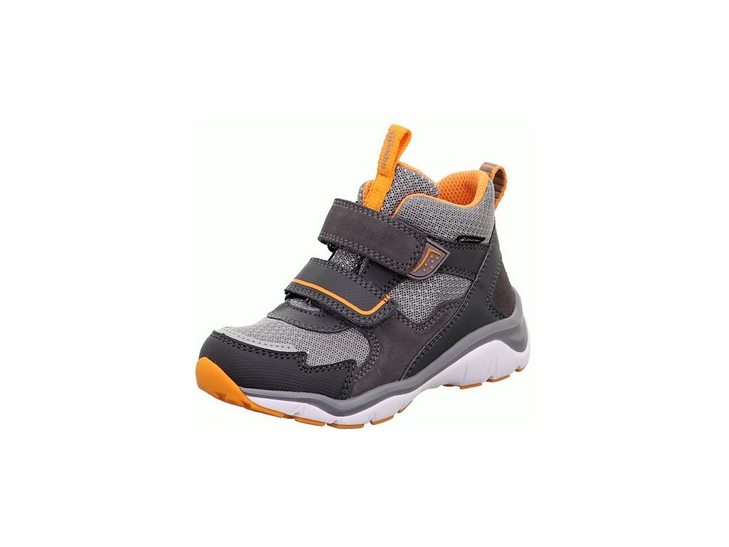Celoroční kožené kotníkové boty SUPERFIT s membránou GoreTEX. Zapínání na 2 suché zipy. Klasický model, jeden z nejoblíbenějších. Zajímavá barevná kombinace - kombinace šedé a oranžové barvy. Mírně zateplené.
