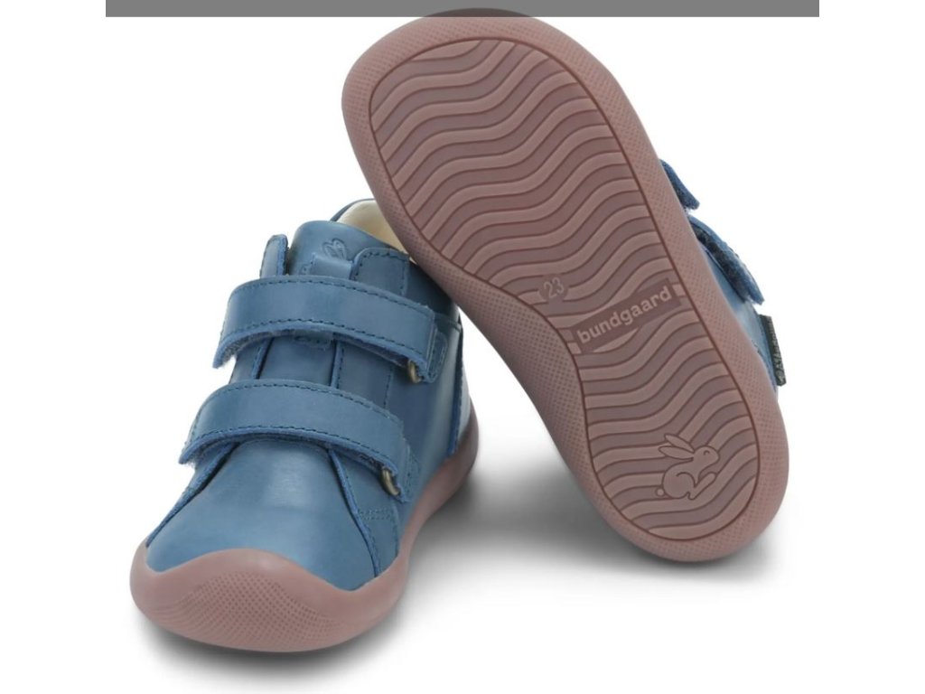 Celoroční dětské kožené boty od dánské prémiové značky BUNDGAARD. Bota má optimální tvar špičky a je vhodná i pro dominantní palec. Tento model má pevnější opatek v oblasti paty, patří do kategorie kompromis barefoot obuvi. Měkká a maximálně flexibilní podešev je opatřena protiskluzovým vzorkem a je přetažená přes přední část okopové špice, která chrání botičky před rychlým okopáním. Podešev na začátku působí tuhým dojmem, ale rozhýbe se. Bota je vyrobena z měkké přírodní kůže, která je barvena přírodními barvami. V botě je vyndavací kožená stélka, kterou můžete jednoduše vyndat a nahradit jinou, pokud by vám nevyhovovala. Zapínání na 2 suché zipy, které jsou předpřipravené pro zkrácení. Vhodné pro normální/užší nožičky. Prodyšná a nepromokavá membrána Bundgaard-Tex.