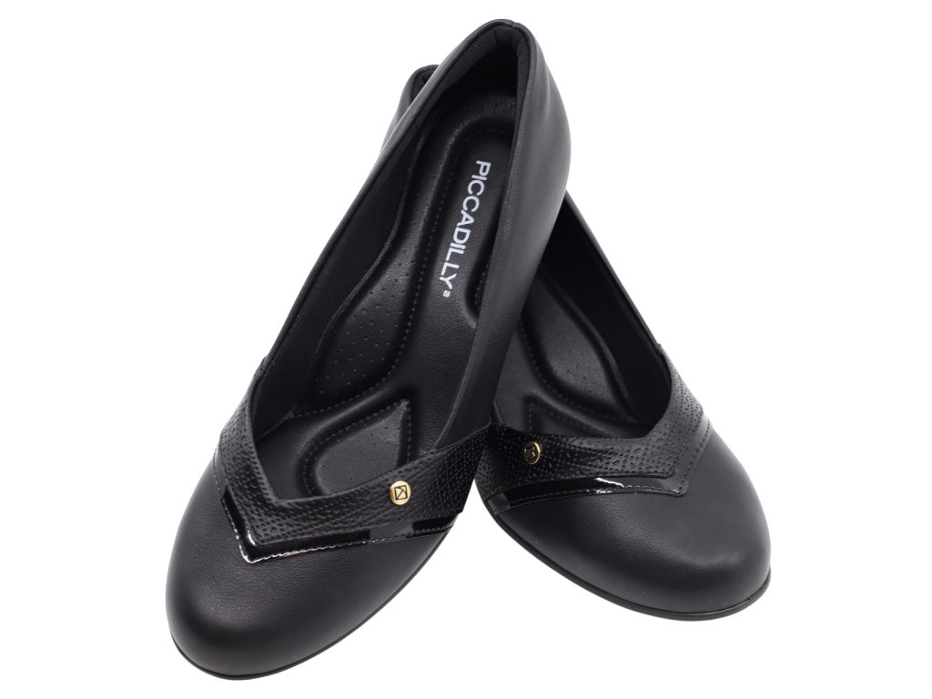 Černé dámské pohodlné lodičky PICCADILLY s nízkým podpatkem a gelovými, měkkými stélkami spojují brazilskou kvalitu a elegantní design pro celodenní komfort.