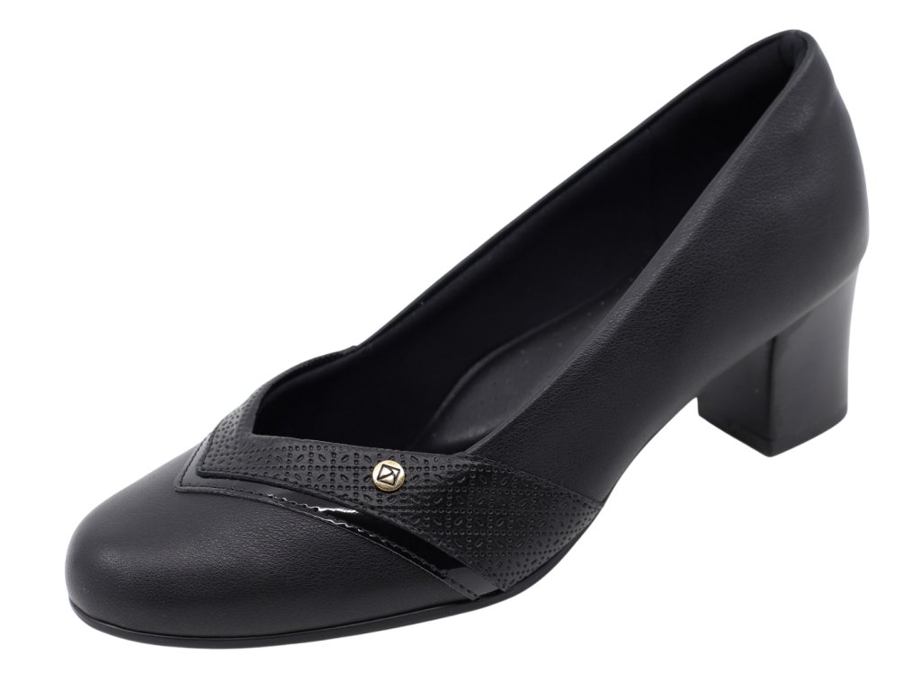 Elegantní černé dámské lodičky PICCADILLY spojují brazilskou kvalitu, nadčasový design a maximální pohodlí. Díky anatomicky tvarované stélce, gelovým vložkám a nízkému stabilnímu podpatku jsou ideální pro celodenní nošení – ať už do kanceláře, na společenské akce nebo běžné denní pochůzky.