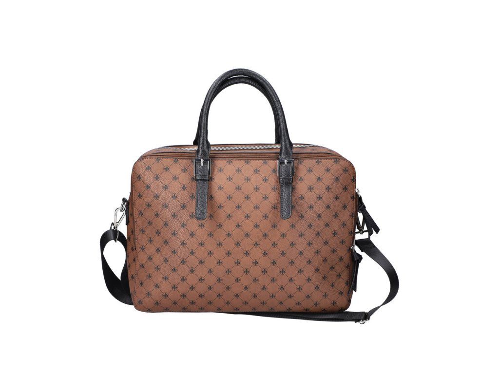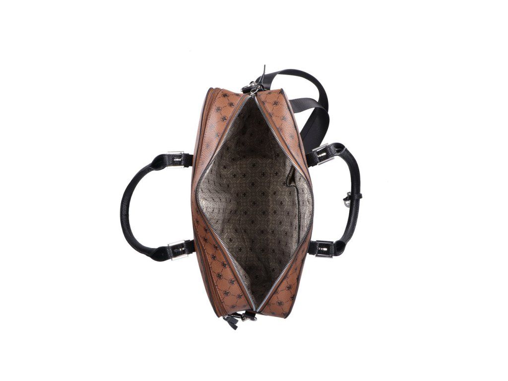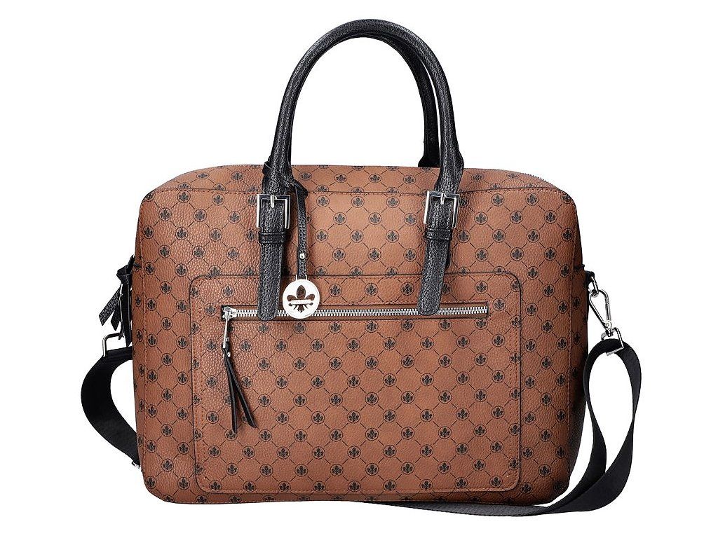 Kabelka má 2 samostatné části se zapínáním na zip - uvnitř kabelky v přední části je našitá jedna otevřená kapsička např. na mobil, uvnitř zadní části kabelky je našitá větší kapsička se zipem vhodná např. na doklady. Na přední straně kabelky je další kapsa na zip. Kabelka má 2 krátké uši, které se nedají odepnout. V balení je i dlouhý popruh, který můžete připnout a nosit kabelku přes rameno. Pevné dno. Oříšková barva doplněná potiskem loga výrobce. Stříbrné detaily. Ozdoba se dá sundat.
