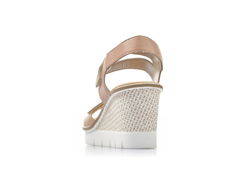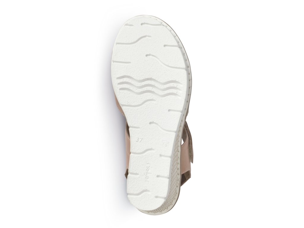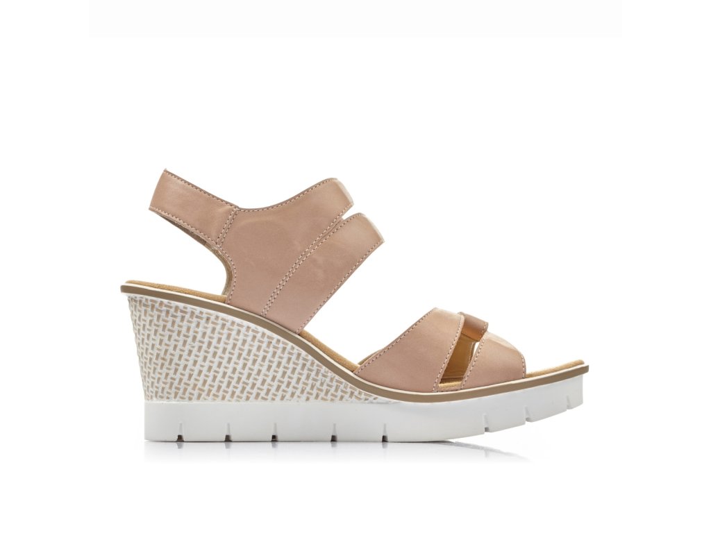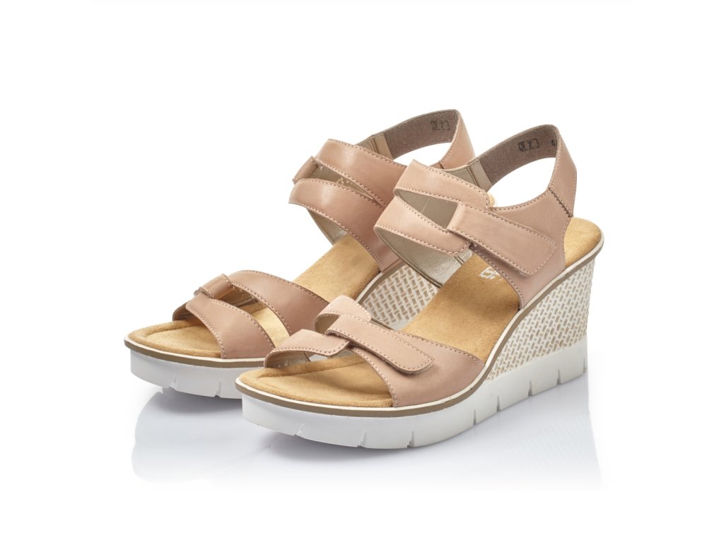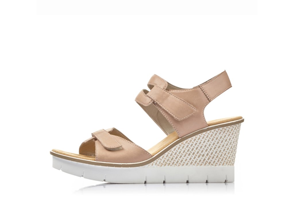 Chcete být v každém okamžiku elegantní? S tímto modelem neuděláte chybu. Tyto letní boty jsou ideální na každou příležitost. Jedná se o dámské letní boty RIEKER na vyšší platformě - výška cca 8 cm. Boty mají 2 pásky, jeden přes prsty, druhý okolo kotníku. Oba dva jsou na suché zipy. Jemná přírodní barva.