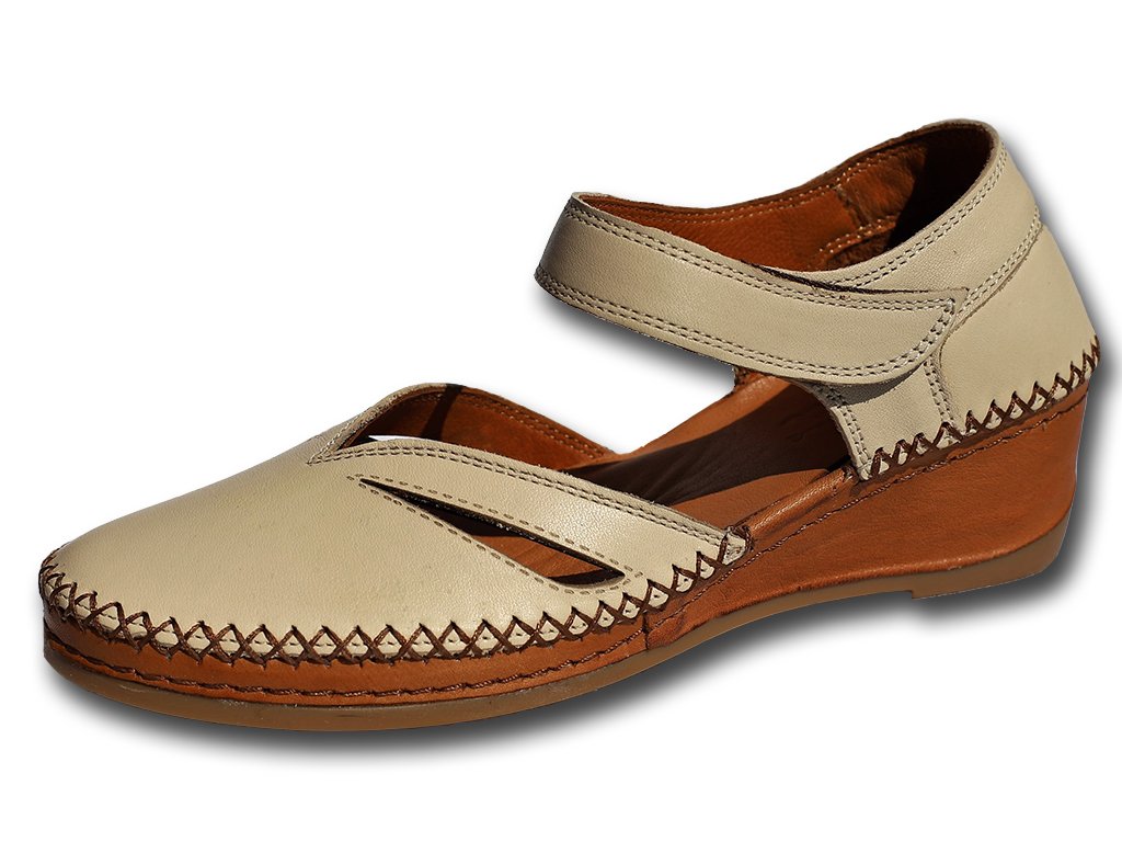 Hledáte vyjímečně měkké letní boty? Právě jste je našly. Tento celokožený model má neuvěřitelně měkkou stélku a podešev, kterou oceníte při celodenním nošení. Letní sandálek MANITU na klínku je vhodný jak ke kalhotám, tak i k sukni. Zajímavé prošívání. Kombinace hnědé a offwhite barvy.