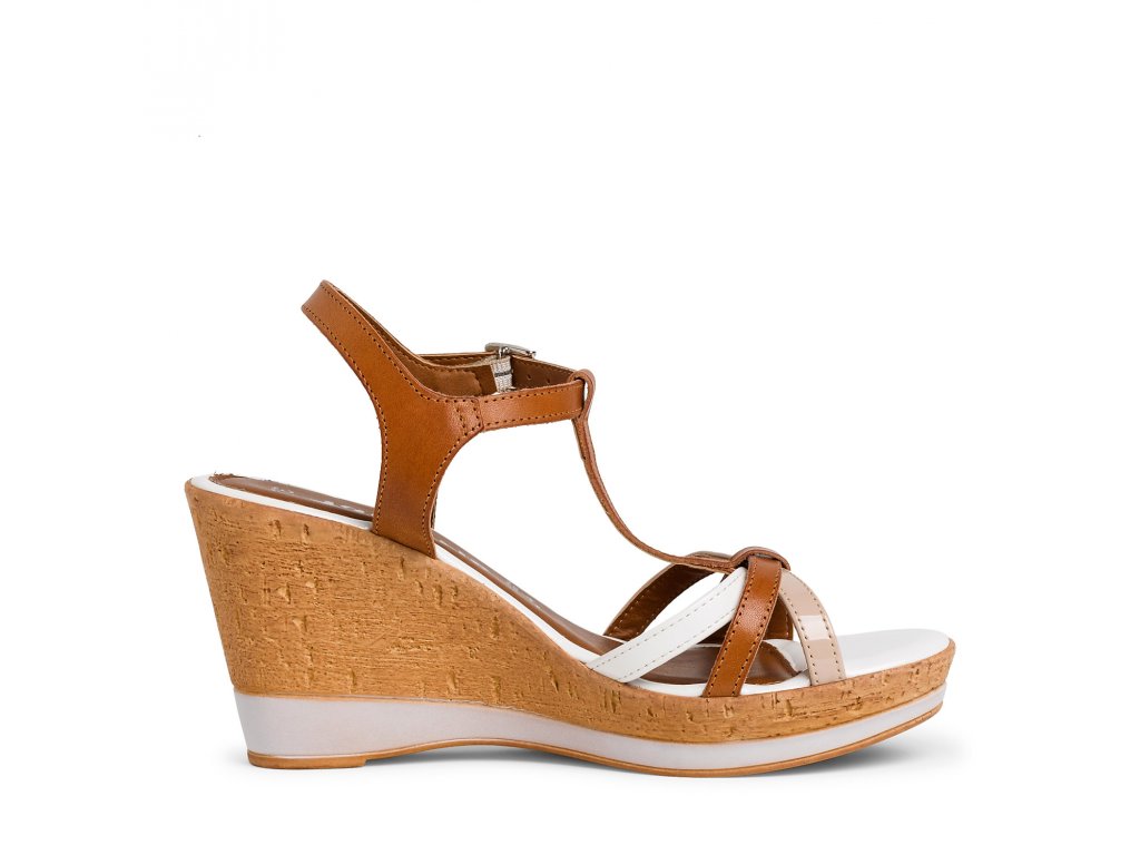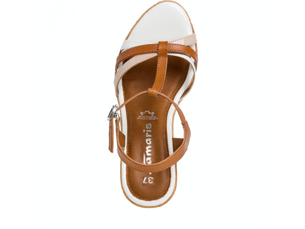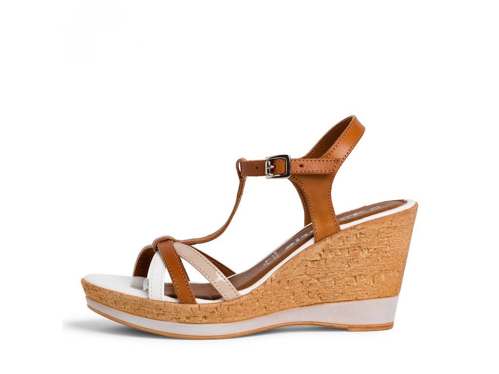 Úžasné letní pásečkové boty TAMARIS na klínu v módní koňakové barvičce. Pásky mají různé barvičky.