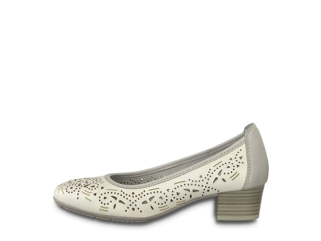 Celokožené lodičky JANA v bílošedém provedení s prosekanými ornamenty. Výška podpatku je cca 40 mm.