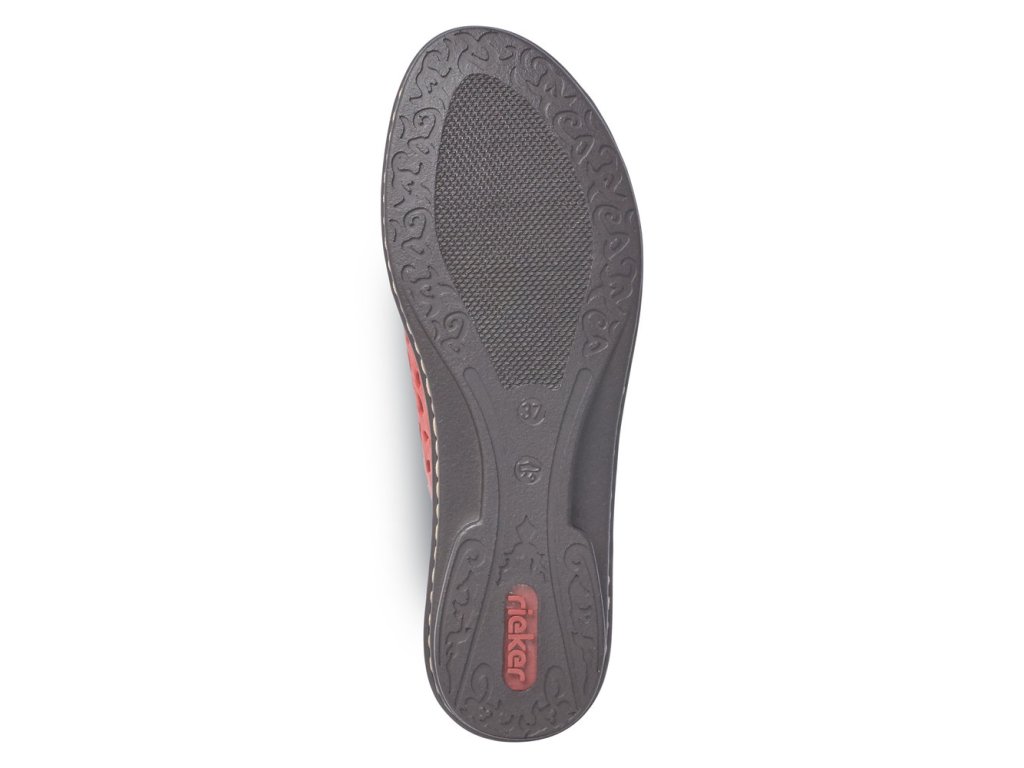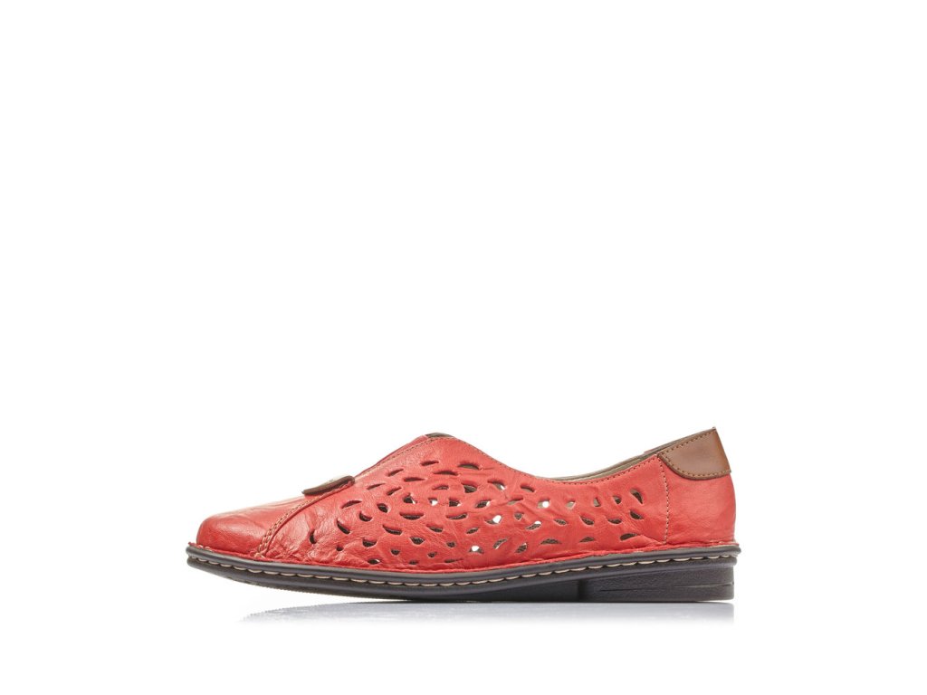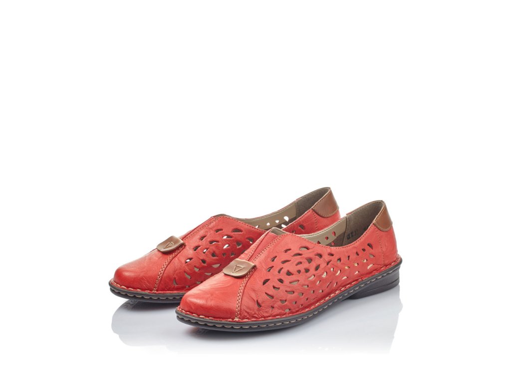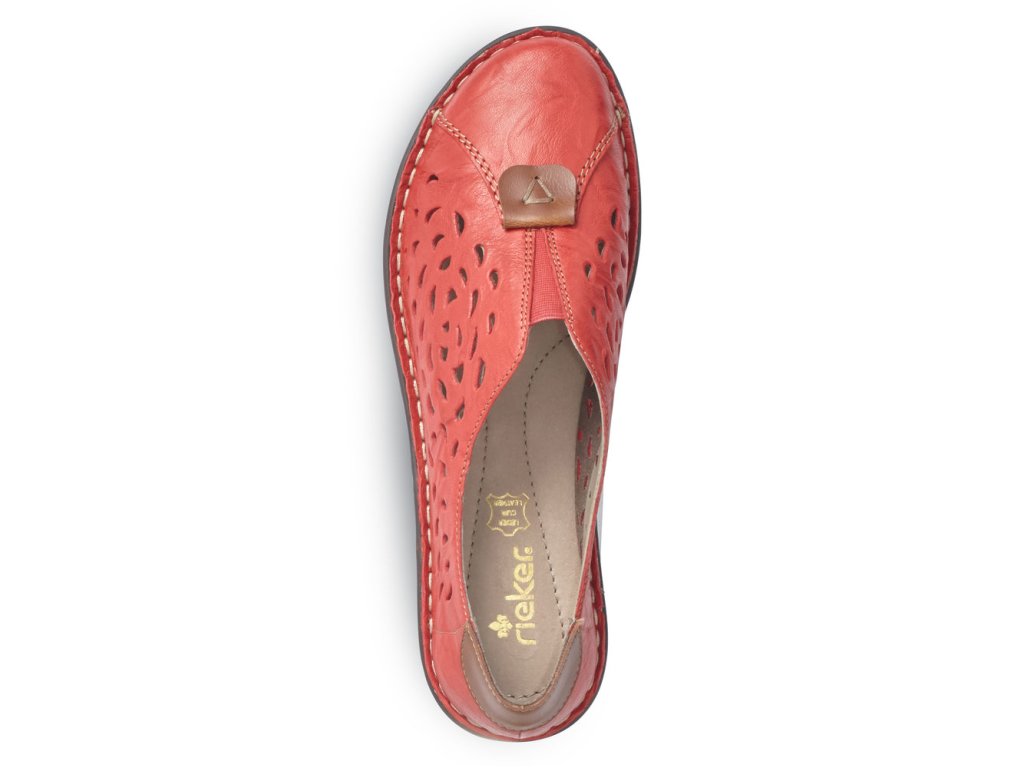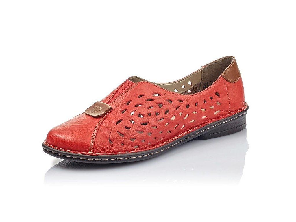 Máte ráda červené tóny? Pokud ano, pak jistě oceníte tento perforovaný letní model od výrobce RIEKER.