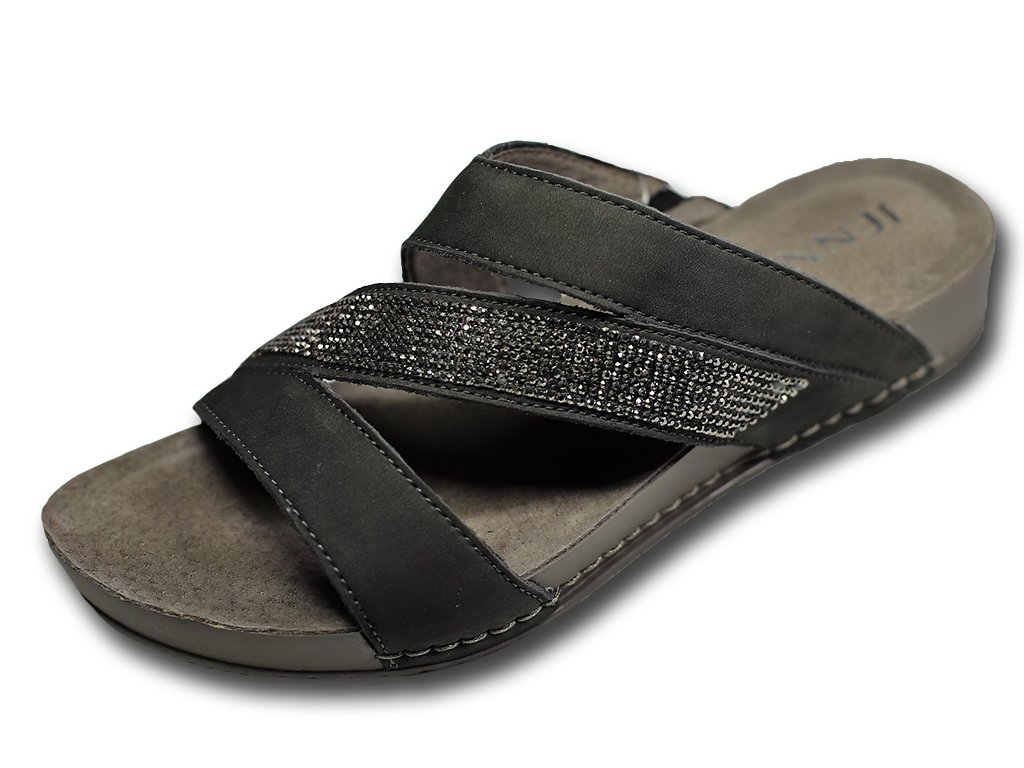 Moc hezké letní kožené dámské pantofle v šedé barvě. Pohodlná vyměkčená stélka. Od výrobce označeno šířkou H, ale my si myslíme, že se jedná spíše o užší model.
