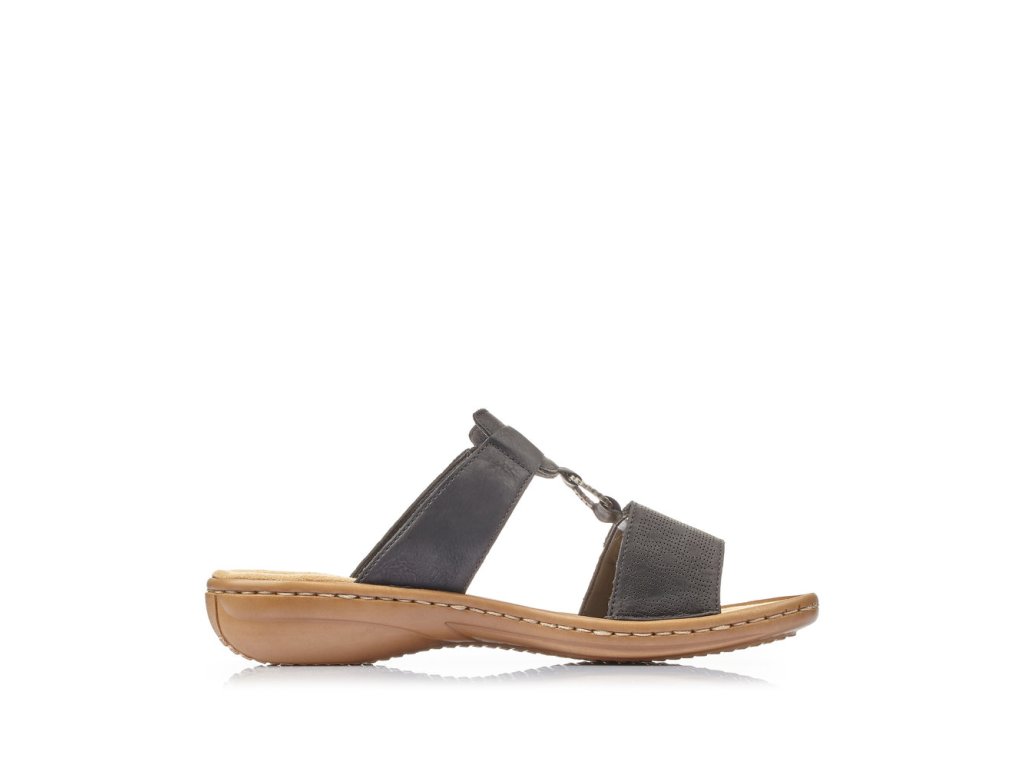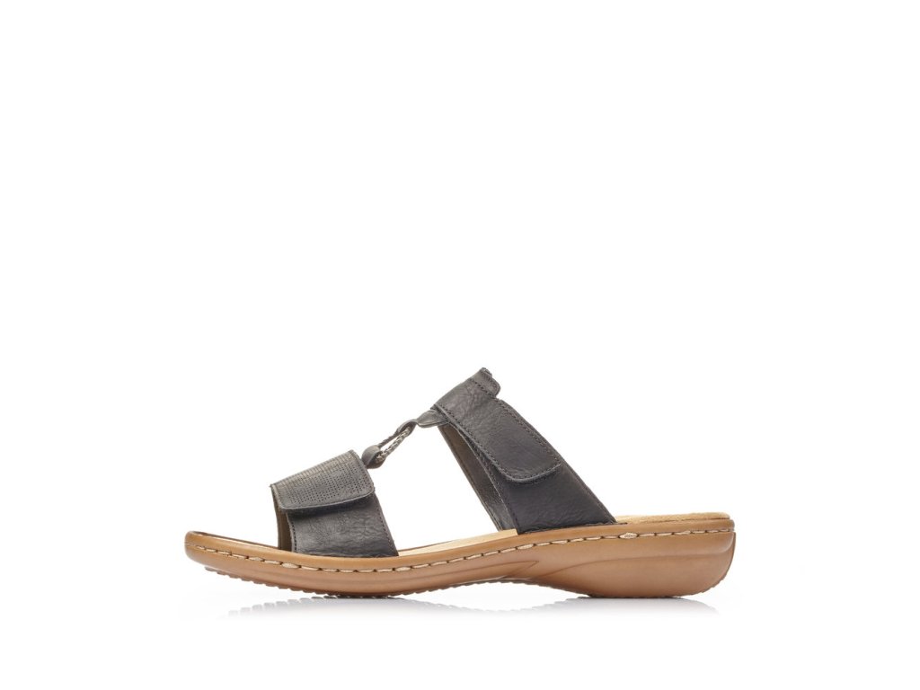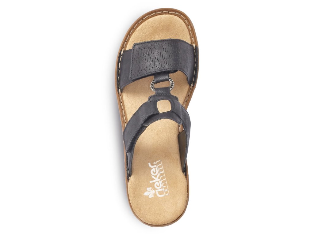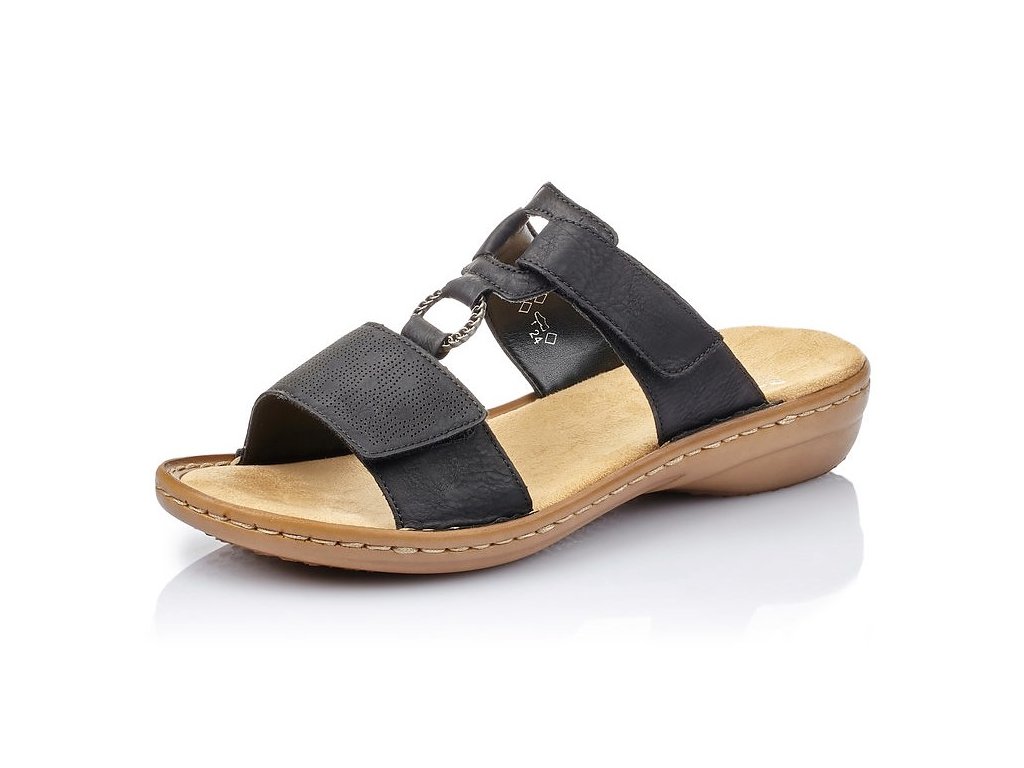 Právě jste našli lety prověřenou klasiku. Tyto dámské letní pantofle v černé barvě jsou jedny z nejprodávanějších od výrobce RIEKER. Přes nárt i přes prsty je pásek se zapínáním na suchý zip. Přední pásek má jemnou tečkovanou perforaci. Komfort Vaší chůze bude zajišťovat vyměkčená stélka.