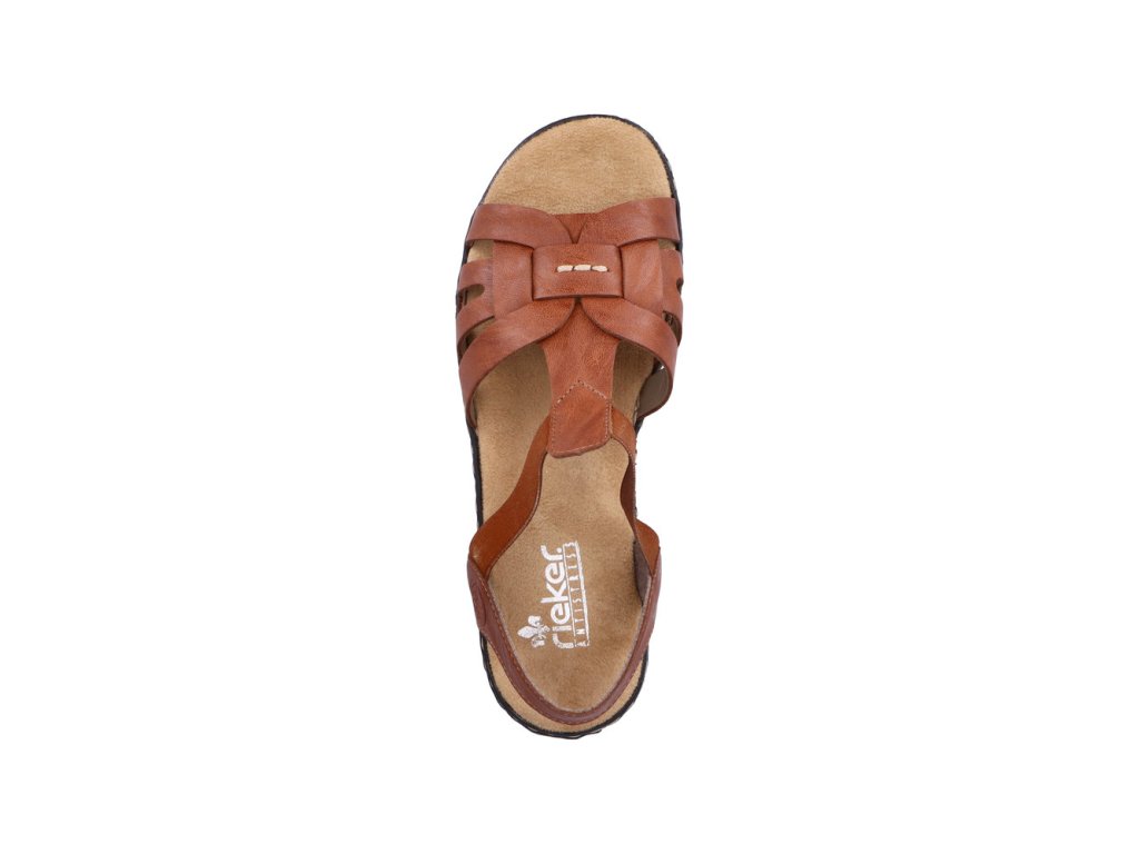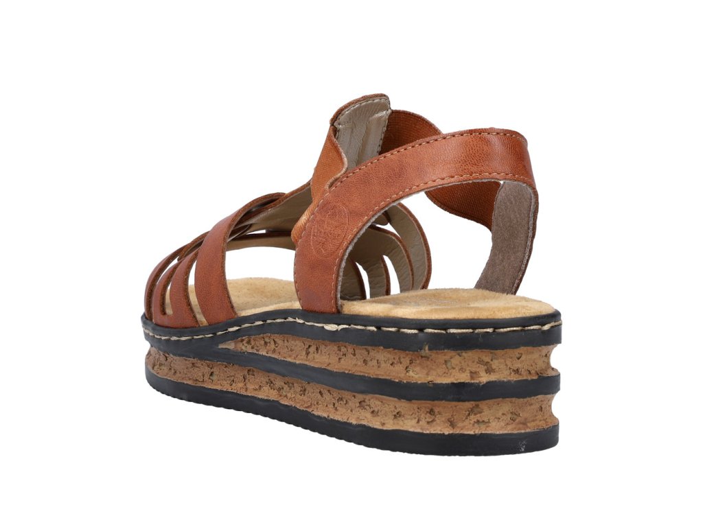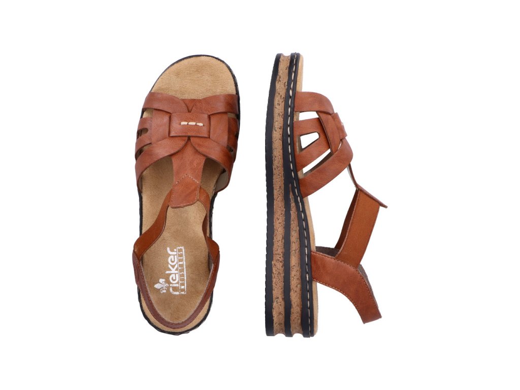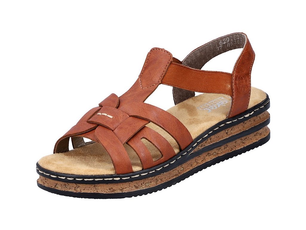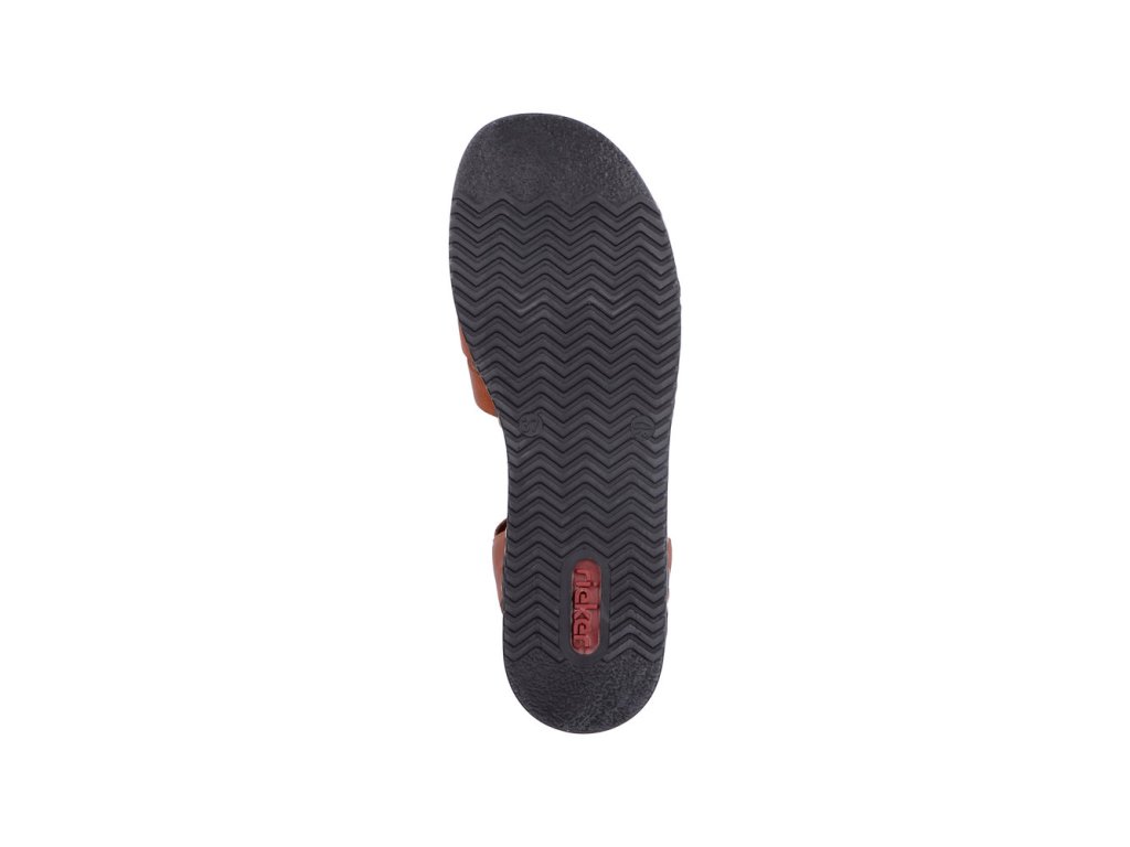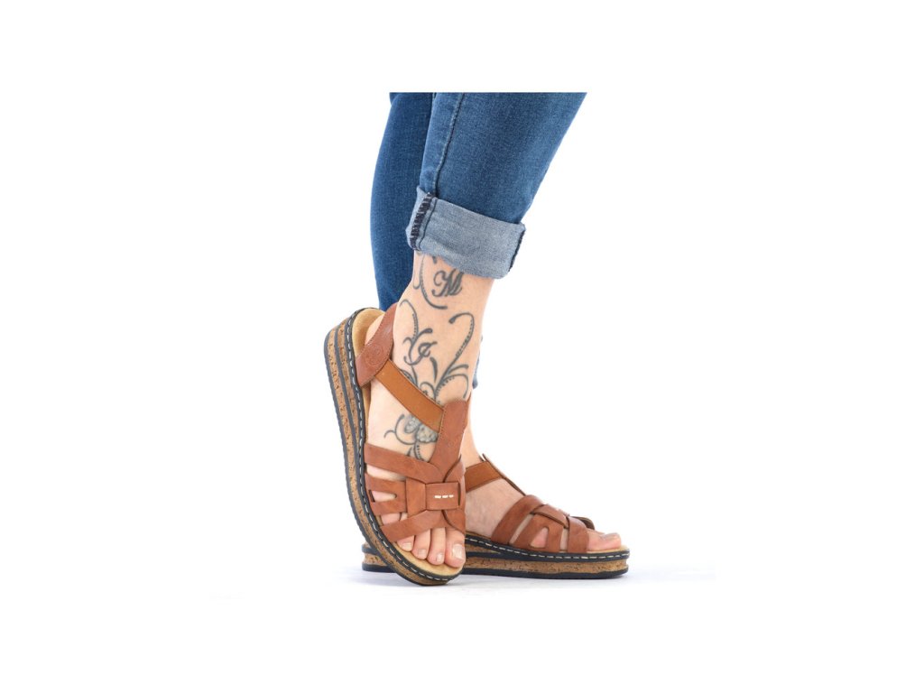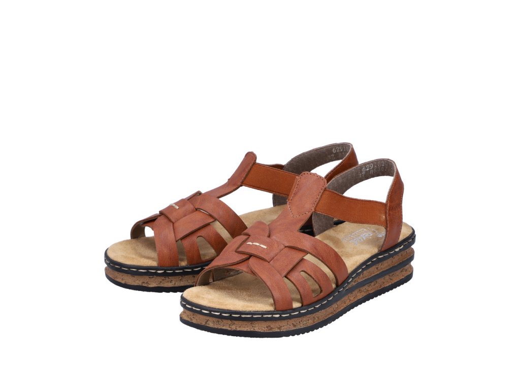 Dámské letní nazouvací sandále RIEKER s velice zajímavě propletenými pásky na nártu. Jeden z nejoblíbenějších letních modelů, který snadno obujete díky velice pružným gumičkám. Výška platformy pod prsty je cca 2 cm, pod patou cca 4 cm. Kulatá špička. Univerzání hnědá barva, která se bude hodit ke každému oblečení.