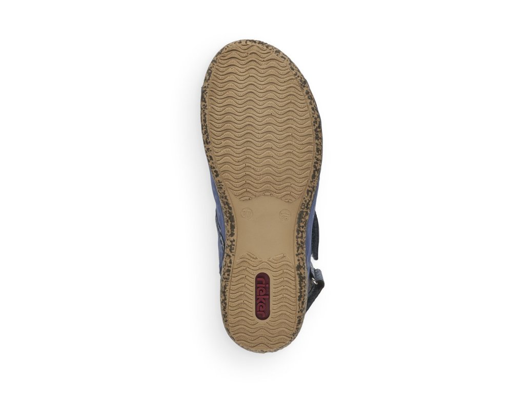 Máte širší nohu a vyšší nárt? Určitě byste měly vyzkoušet tento model letních sandálů. Tyto dámské kožené sandále RIEKER jsou vhodné na šiřší nohu a vyšší nárt. Všechny tři pásky mají zapínání na suché zipy. Zajímavá modrá barvička, stříbrné detaily. Extra široký model.