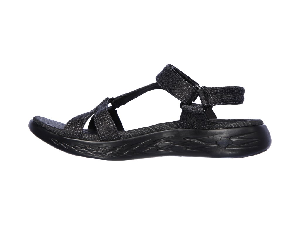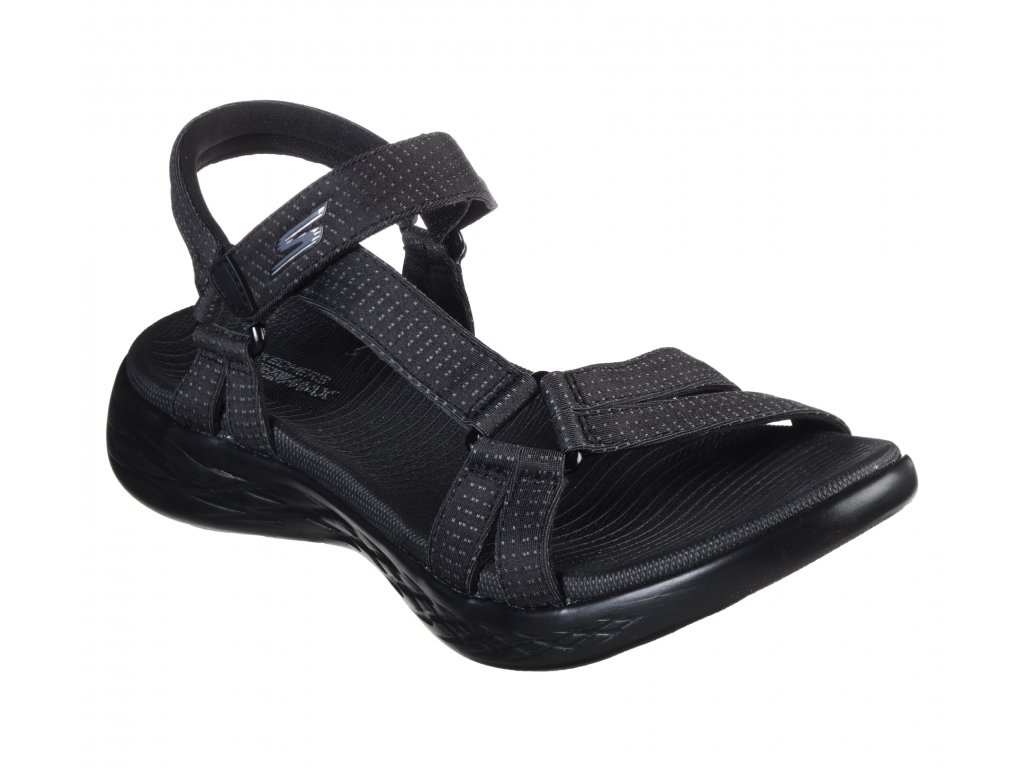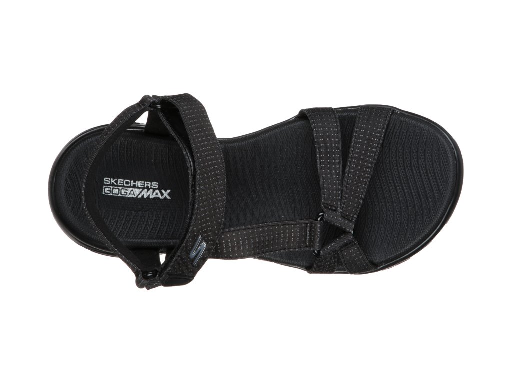Jednoduché, odlehčené sportovní sandále SKECHERS v černé barvě. Sandále mají okolo kotníku pásek se zapínáním na suchý zip.