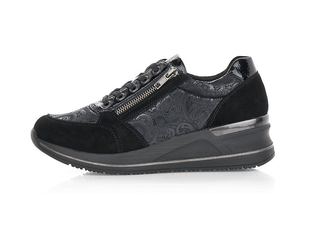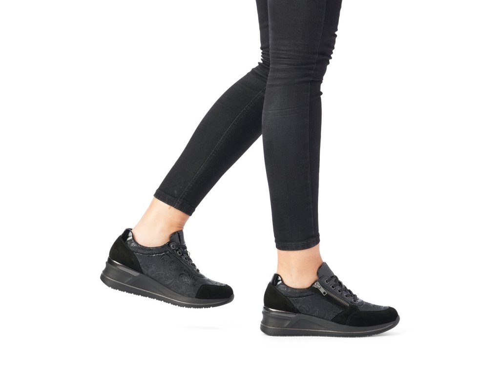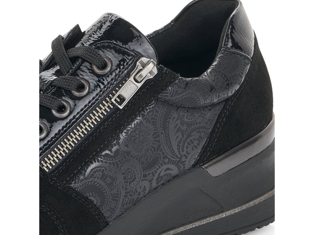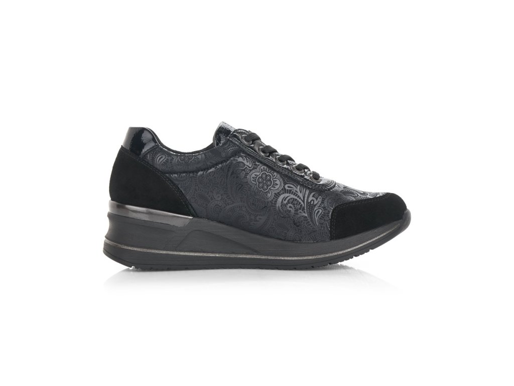 Hledáte jednoduché, elegantní černé dámské tenisky? Pokud ano, určitě oceníte tento model od výrobce REMONTE. Tenisky mají vyvýšenou podešev - mírný klínek. Pro snadnější obouvání můžete používat funkční zip. Jemný květinový motiv. Při celodenním nošení oceníte vyměkčenou stélku - SOAF FOAM.