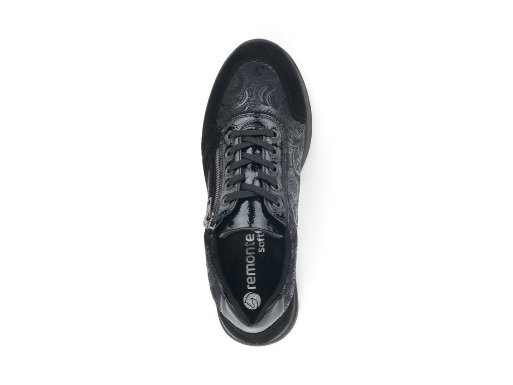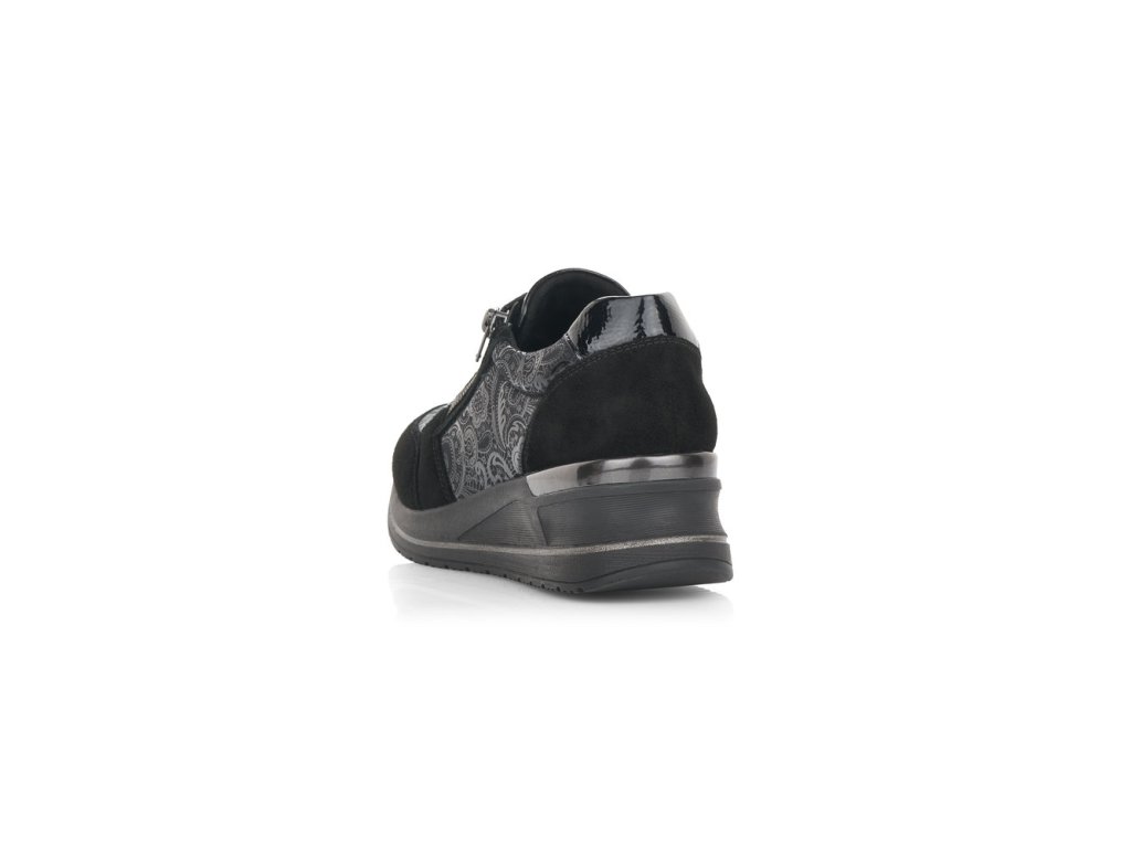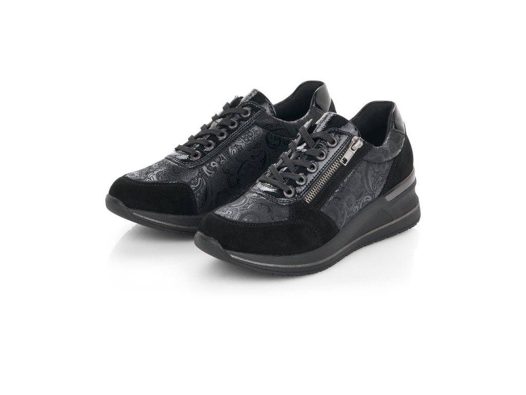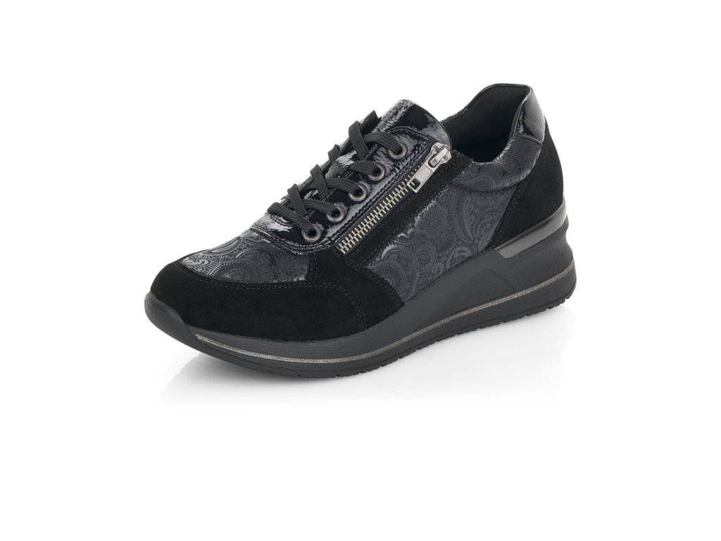 Hledáte jednoduché, elegantní černé dámské tenisky? Pokud ano, určitě oceníte tento model od výrobce REMONTE. Tenisky mají vyvýšenou podešev - mírný klínek. Pro snadnější obouvání můžete používat funkční zip. Jemný květinový motiv. Při celodenním nošení oceníte vyměkčenou stélku - SOAF FOAM.