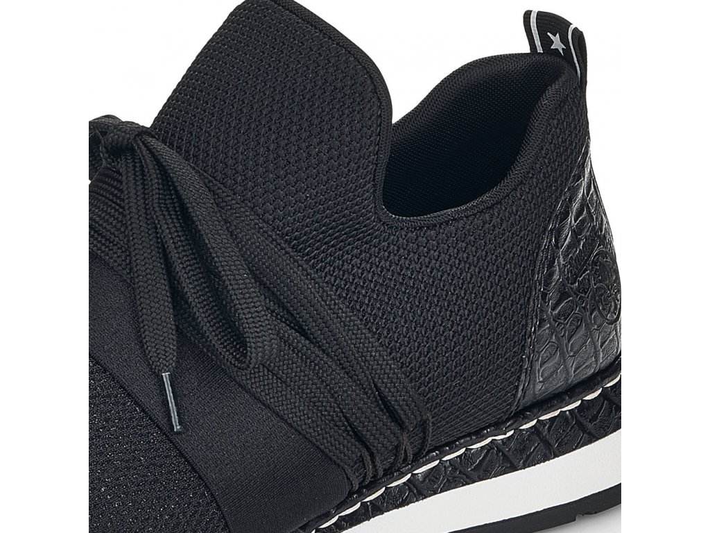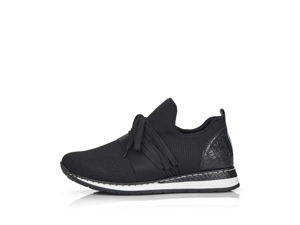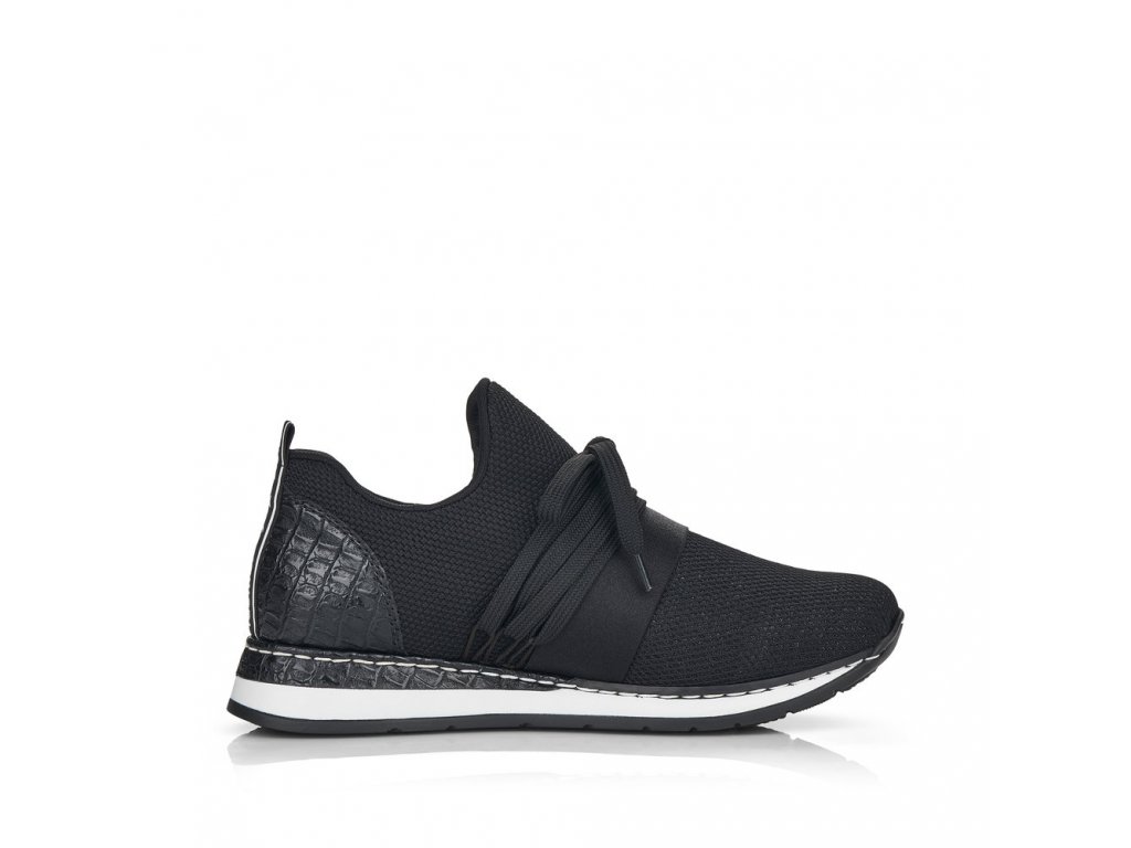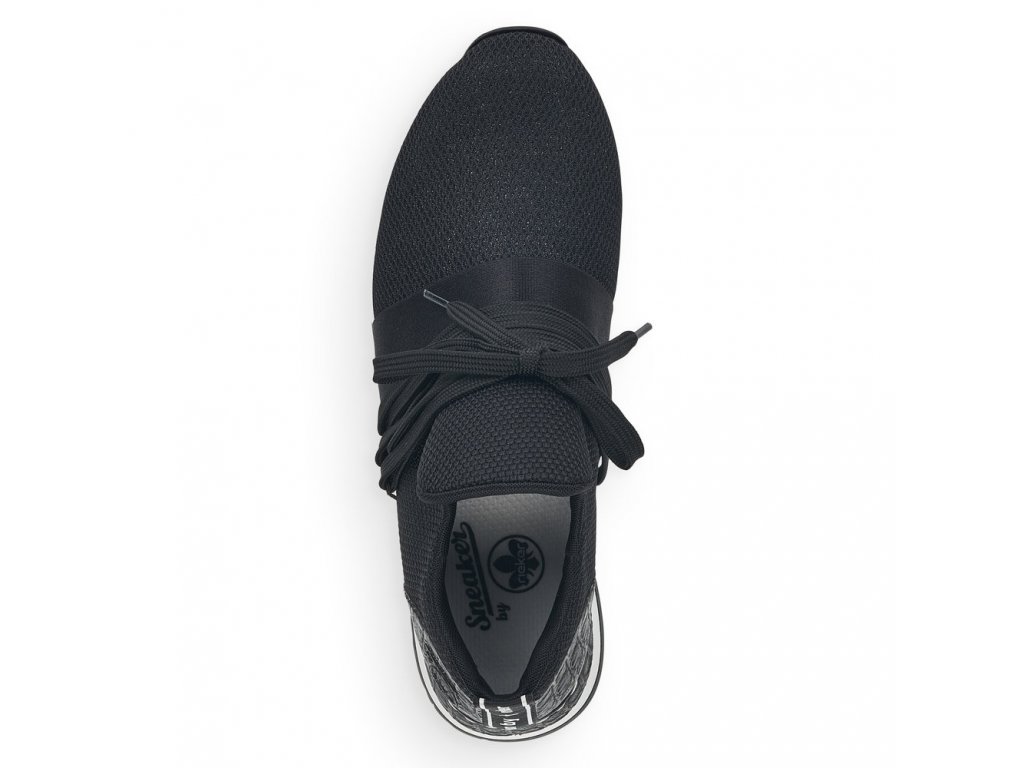 Nosíte ráda tenisky? Nemáte chuť vyzkoušet tento model od výrobce RIEKER? Zajímavé tenisky - ,,black and white" barevná kombinace se stříbrnými odlesky na špičce. Mírně zvýšená pata - cca 3 cm. Nazouvací model, ozdobné tkaničky. Sneaker by RIEKER - bílá podešev s černými detaily.