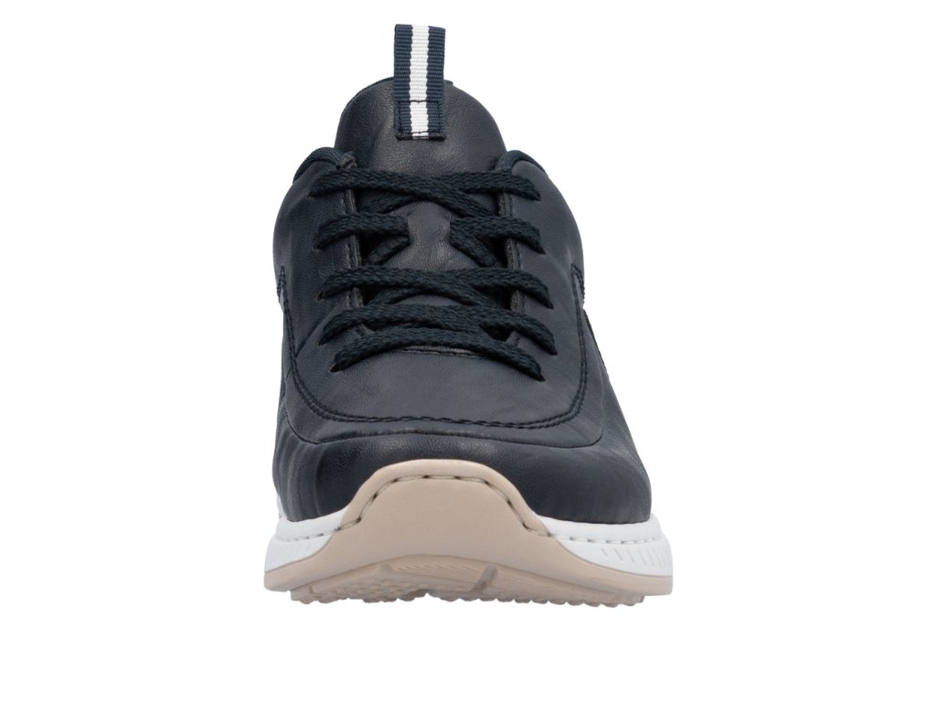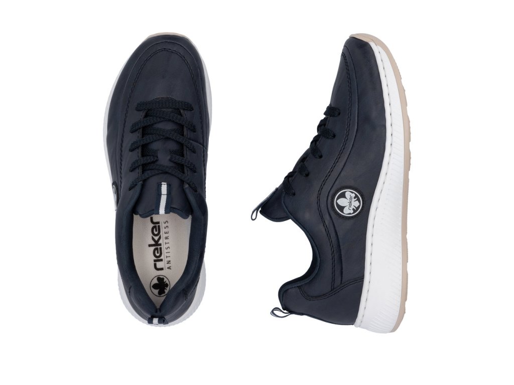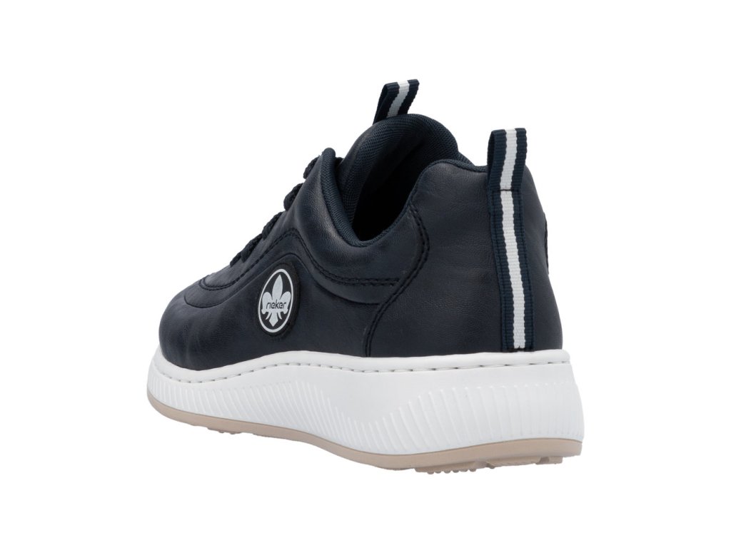 Dámská teniska RIEKER se zavazováním na tkaničky. Při celodenním nošení oceníte vyměkčenou stélku. Výrobce RIEKER pro Vás tento model připravil v univerzální tmavě modré barvě. Na straně našité logo výrobce. Výraznější prošití v barvě. Bílá podešev s přírodním proužkem.