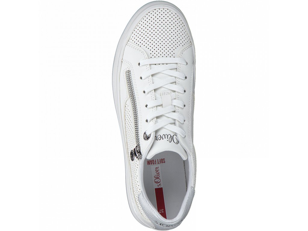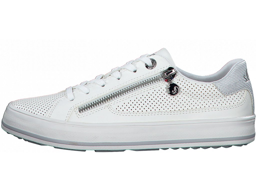 Bílé tenisky s.OLIVER s ozdobným zipem na vnější straně. Jemná perforace. Zavazování na tkaničky. Pohodlnou, měkkou stélku - SOFT FOAM oceníte při celodenním nošení.