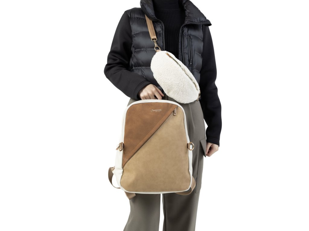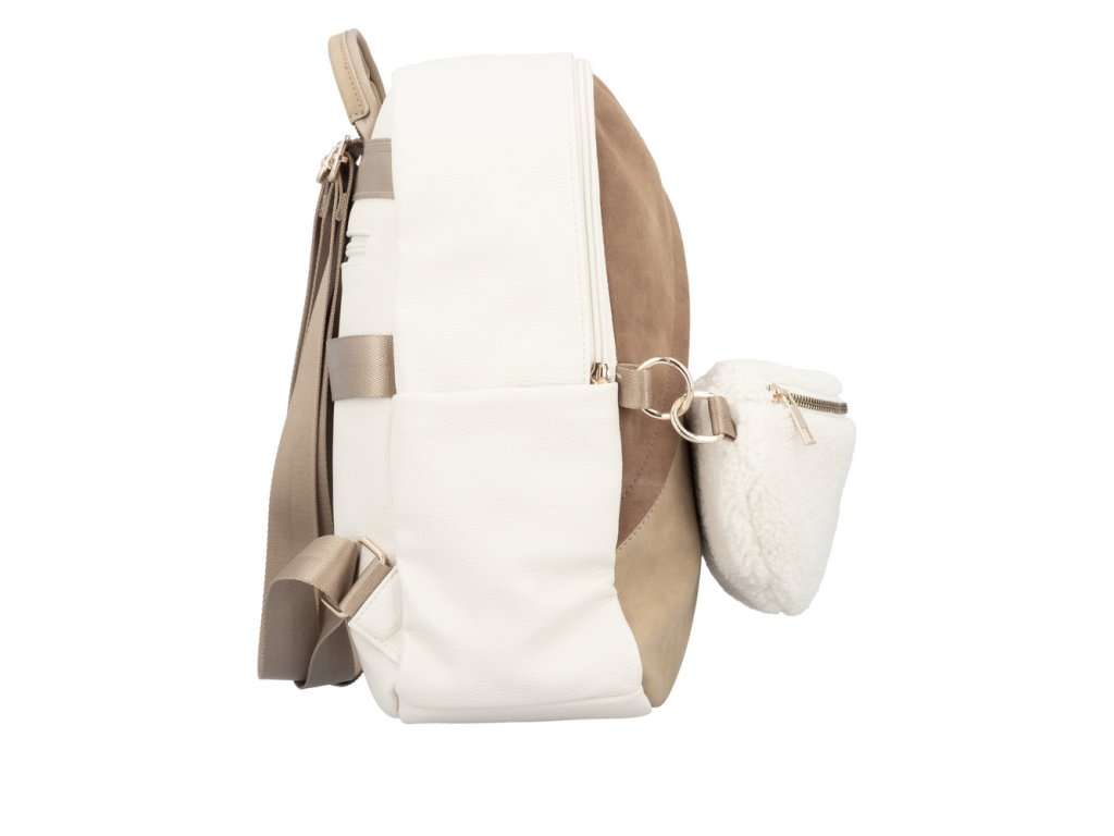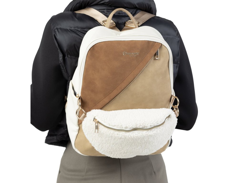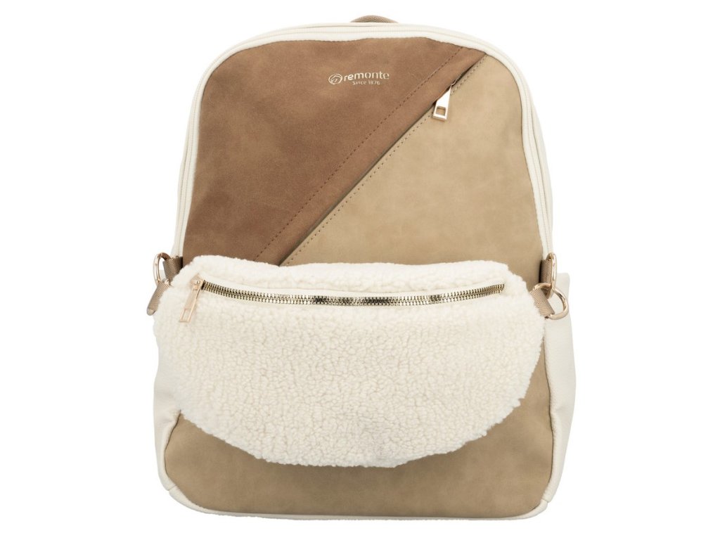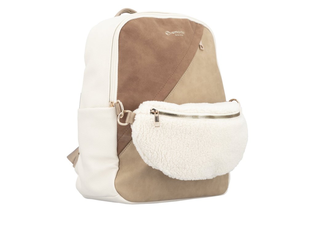 Model od REMONTE je vyrobený z kvalitního syntetického materiálu s jemnou strukturou připomínající kůži, působí elegantně a zároveň je nenáročný na údržbu. Neutrální béžový odstín s jemnými metalickými detaily dodává batohu šmrnc a zaručuje, že ho snadno sladíte s každodenním outfitem.