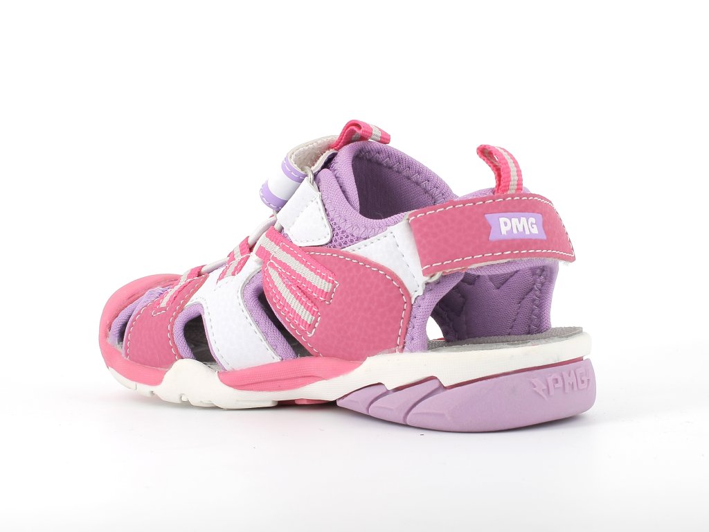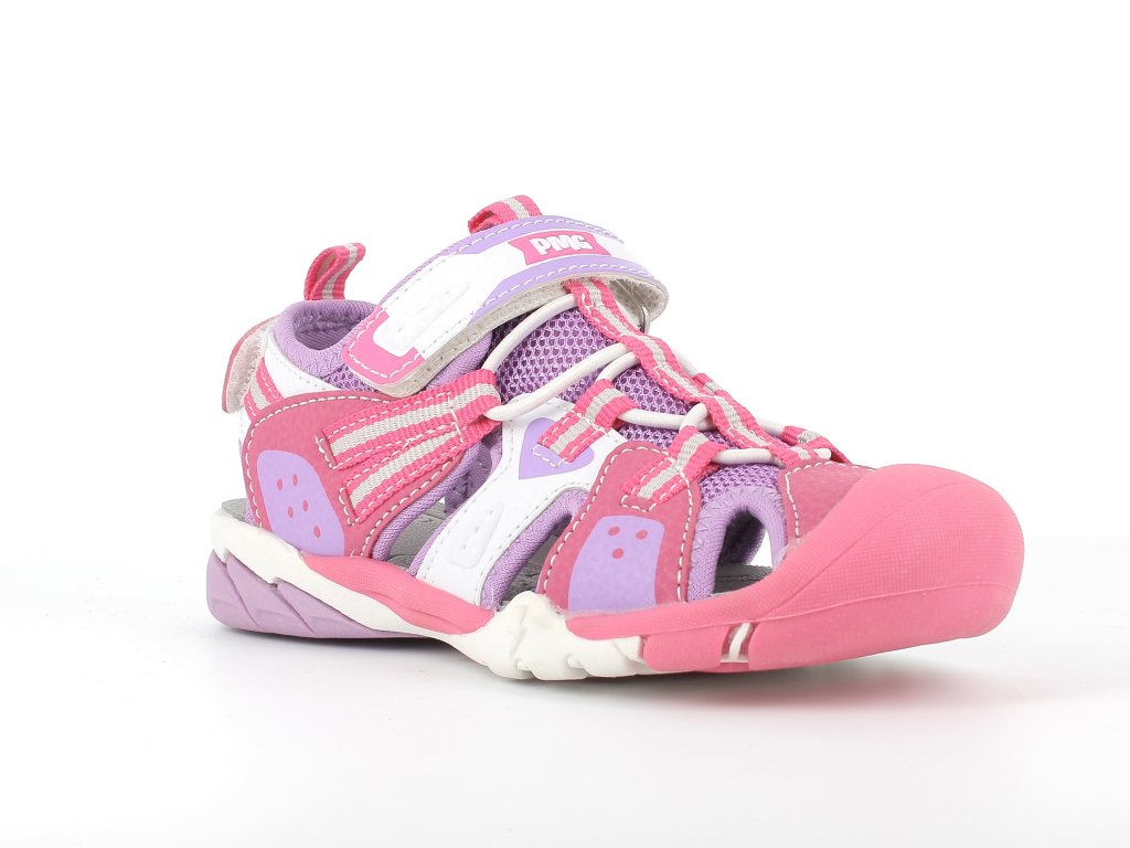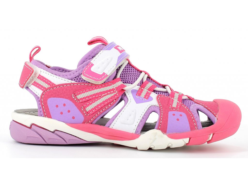 Sportovní model pro každé letní dobrodružství. Model s krytou špičkou, která chrání prstíky proti okopání. Zvednutá podešev chrání botu proti okopání. Zapínání na 2 suché zipy - na patě a přes nárt. Zajímavá barevná kombinace - bílá, růžová a fialová barevná kombinace. Anti SHOCK podešev.