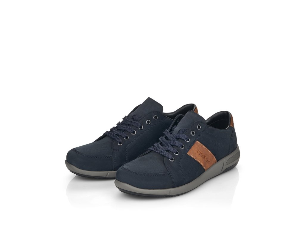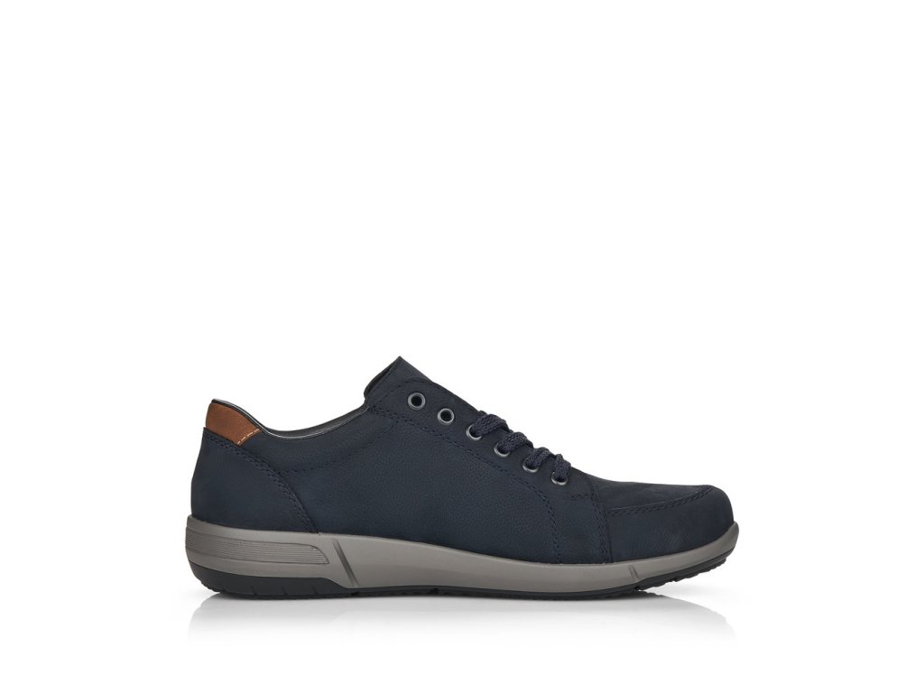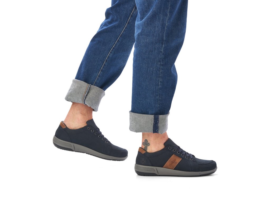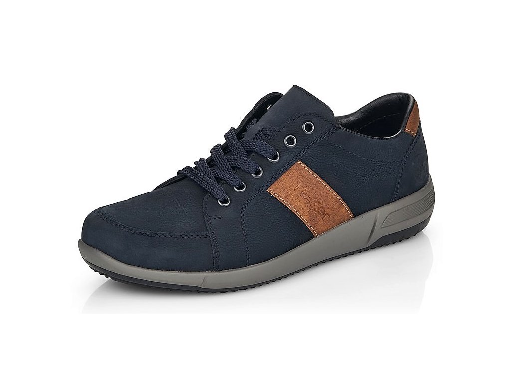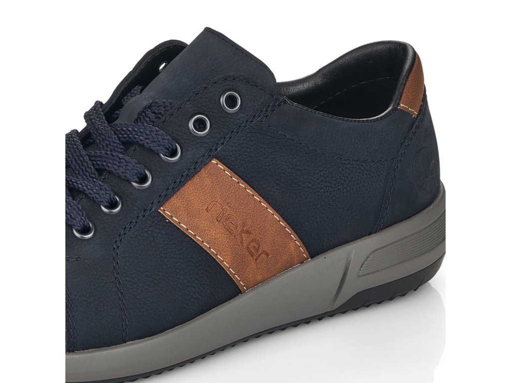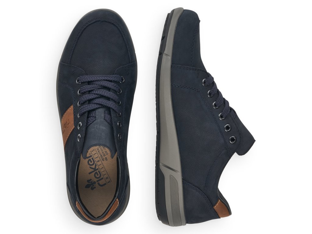 Pánské polobotky RIEKER v tmavě modré barvě. Zavazování na tkaničky, hnědé detaily.