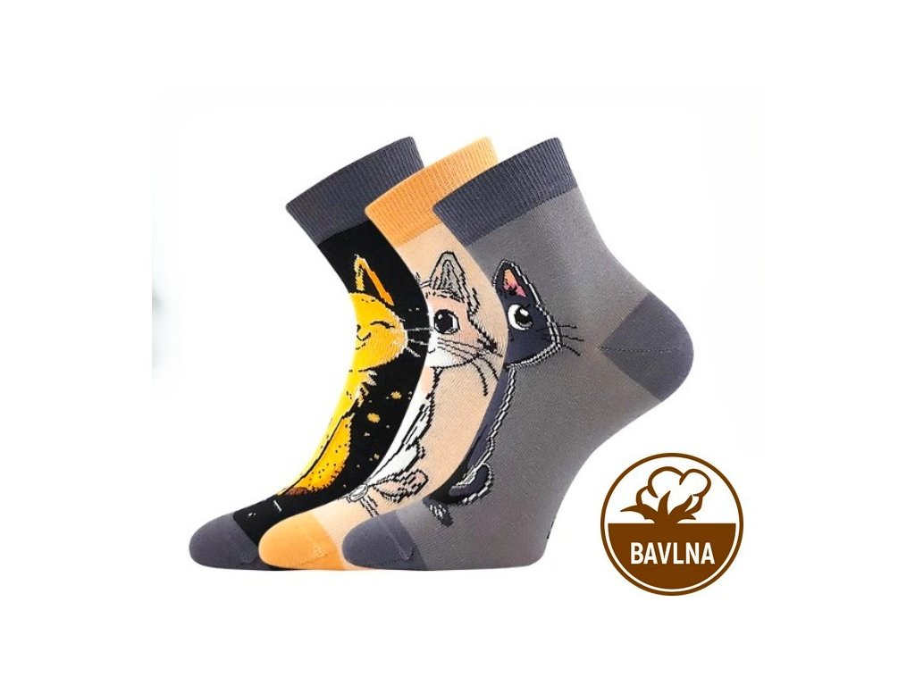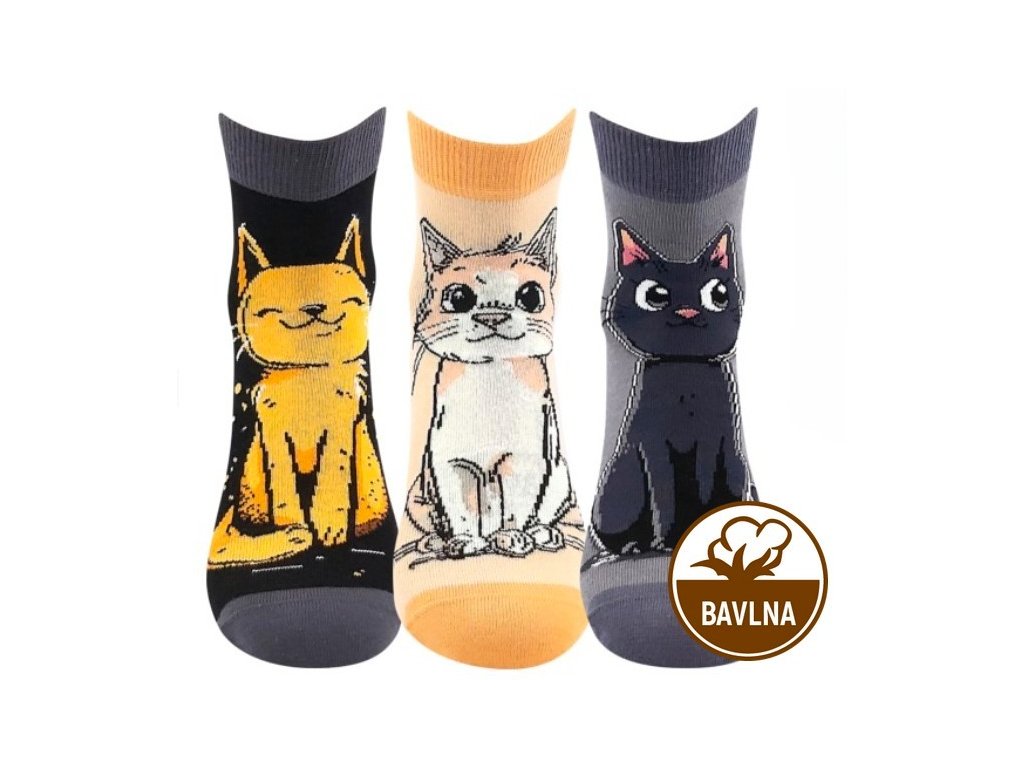 Ponožky BOMA dámské letní MICKA 01 s kočkami MIX A - 3 páry