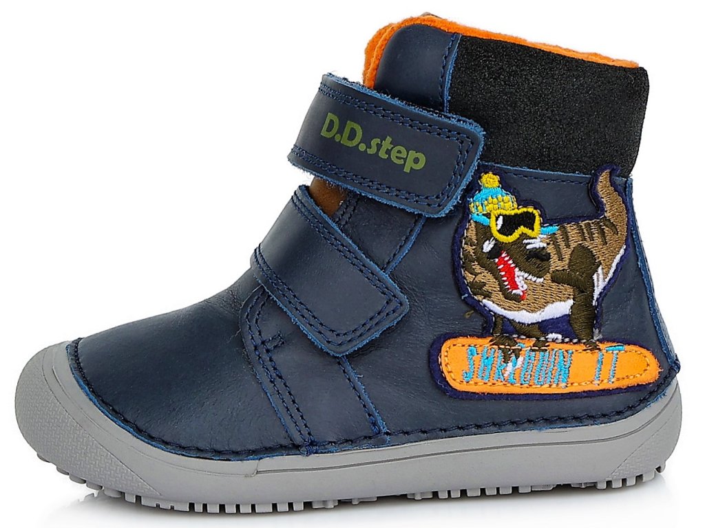 Kožená zimní dětská bota kompletně zateplená kožíškem od výrobce D.D.STEP. Prostorná, kulatá špička s dostatkem prostoru pro dětské prstíky. Zapínání na 2 suché zipy.