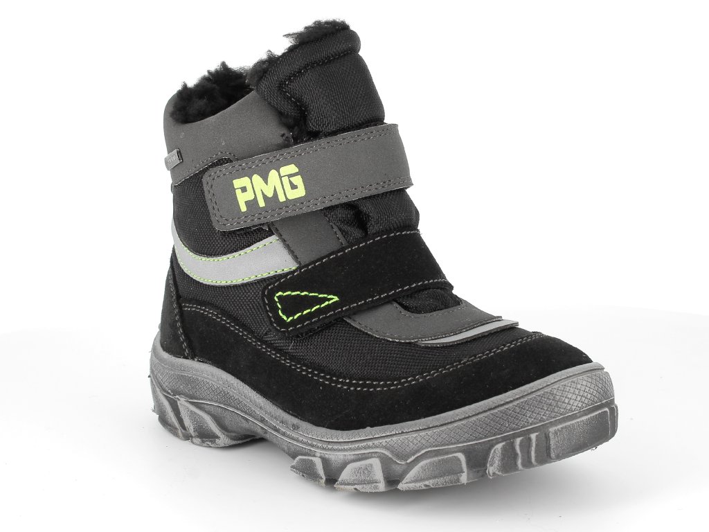 Velice kvalitní zimní boty PRIMIGI vhodné na zimní radovánky. Tento model je vybaven membránou GoreTEX. Zapínání na 2 suché zipy. Zvýšená okopová špička. Zajímavá barevná kombinace - černošedé barevné provedení se zelenými detaily. Zatepleno černým vlasem.