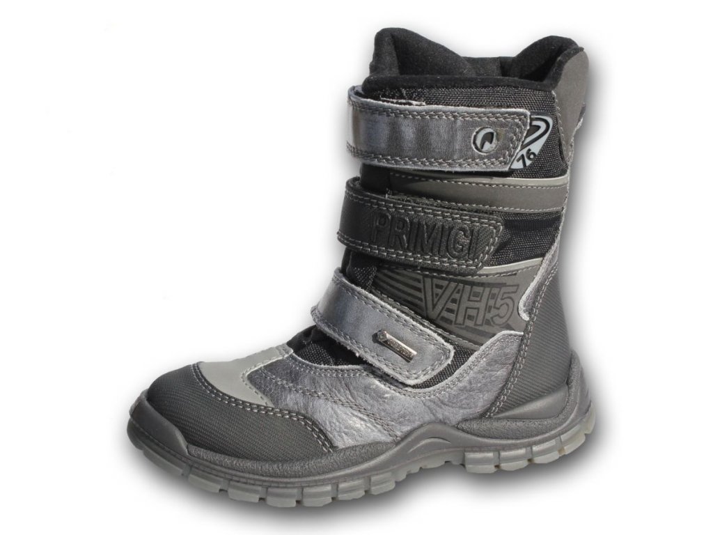 Zimní chlapecké boty PRIMIGI s membránou GoreTex se zapínáním na 3 suché zipy, mírně zvednutá špička, zateplené vlasem, Anti shock podešev.